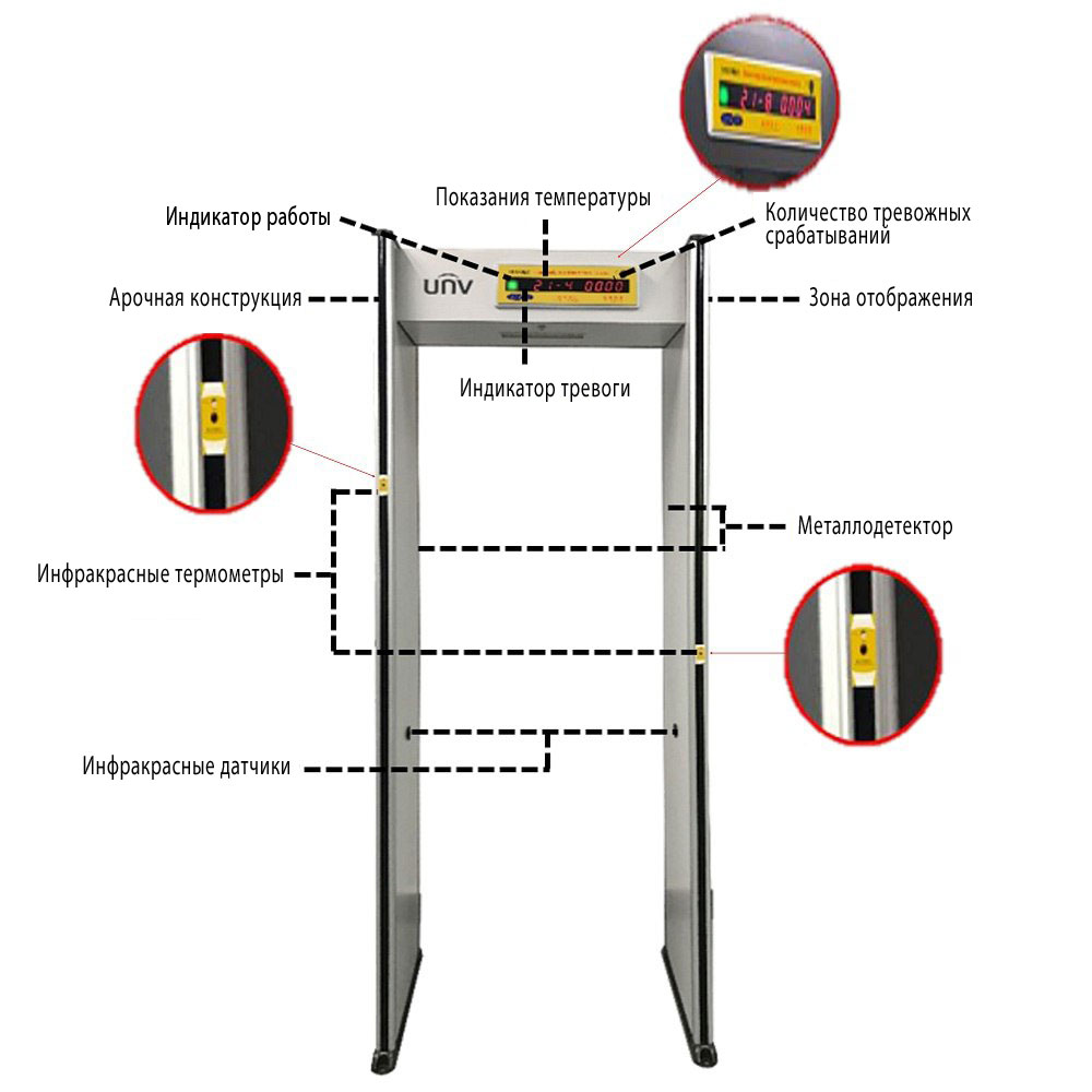 Интересная комбинация устройства для скрининга температуры по запястью с высокоточным 18-зонным арочным металлодетектором представлена в двух исполнениях — OPD-533TM (дистанция считывания до 3 см) и OPD-533TM-B (до 4 см). Как и в интегрированной системе CW180, варианты поставки устройства различаются также диапазоном рабочих температур (15—30°C или 10-40°C). Производитель предлагает и металлодетектора с двумя измерительными модулями USS-SC100A-TM-O — зоны контроля температуры размещаются по обеим сторонам арки. Это позволяет минимизировать время скрининга в целом ряде приложений, в частности, при проходе смешанного потока взрослых и детей.