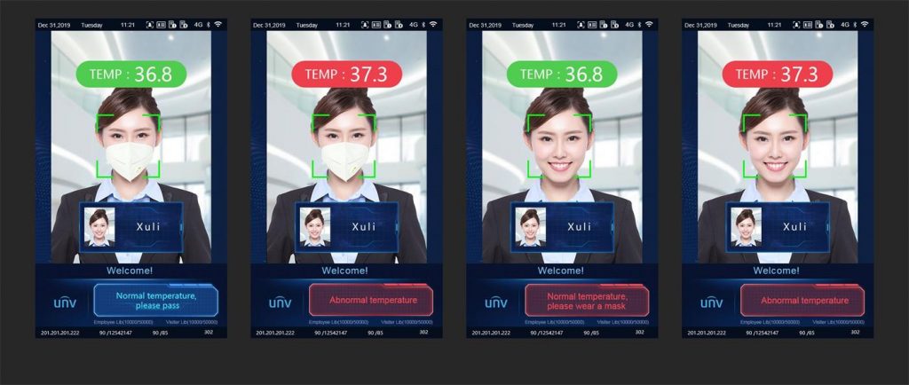 Процесс замера температуры запускается при обнаружении в кадре человеческого лица, находящегося на расстоянии, достаточном для измерения — до 1 метра. Точность самого измерения составляет 0,1°С. Обнаружение лиц на видеоизображении производится по фирменной технологии Uniview, которая обеспечивает точность распознавания свыше 99% и скорость обнаружения от 0,2 секунды.