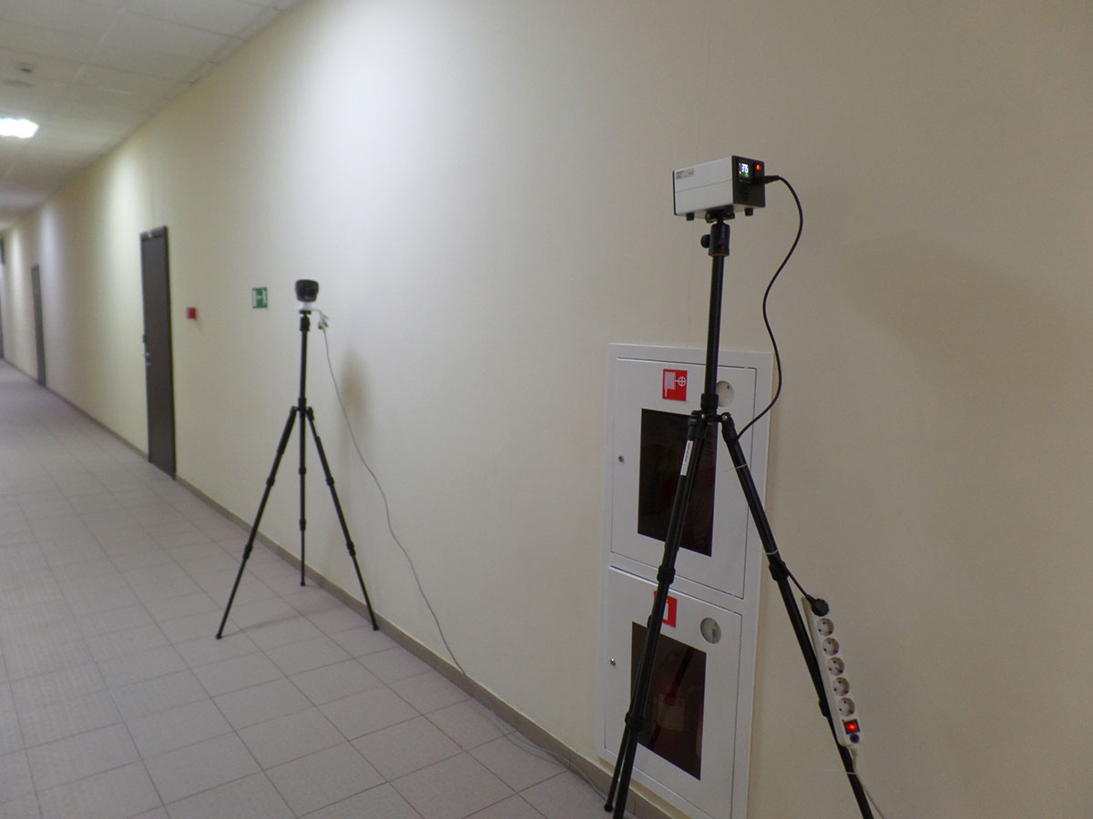 Задача измерений — обеспечить автоматическое оповещение о фактах обнаружения людей с повышенной температурой тела. Для того, чтобы гарантировать полный охват всех входящих на территорию, поток людей необходимо специальным образом организовать. В число факторов, которые предстоит учесть, входят рабочие дистанции измерений, возможность одновременного контроля температуры нескольких лиц, а также нормы социального дистанцирования. Чтобы добиться максимальной точности измерений, необходимо по максимуму избежать наличия в зоне интереса каких-либо объектов, нагретых выше температуры теплового фона. Радиатор отопления, тепловая пушка или работающий электродвигатель могут стать источниками помех и тем самым снизить эффективность контроля. В большинстве случаев подобную проблему можно решить за счёт экранирования — тепловые лучи эффективно задерживаются целым рядом оптически прозрачных материалов, в частности, обычным стеклом и пластиком. Тепловизионный контроль чувствителен и к перемещению воздушных масс по пространству помещения, где проводятся измерения. Сквозняки здесь недопустимы, и в ряде случаев это может потребовать коренной реорганизации пространства проходной. Тем не менее, не исключены и дневные колебания температуры фона, относительно которого термические сенсоры улавливают разницу температур. Для максимальной точности в термографические комплексы обычно рекомендуется включать аппаратные имитаторы абсолютно чёрного тела (АЧТ), располагаемые в поле зрения тепловизора. Принимая температуру фона, рабочая поверхность имитатора играет роль точки отсчёта при измерениях. Помимо технических параметров и организационных моментов, на эффективность контроля может влиять и человеческий фактор. В идеале оператор системы играет роль супервайзера, не вмешиваясь в процессы. Тем не менее, в ходе работы может возникать необходимость принятия «ручных» решений — поэтому необходимо уделить внимание обучению персонала, отвечающего за работу системы. |