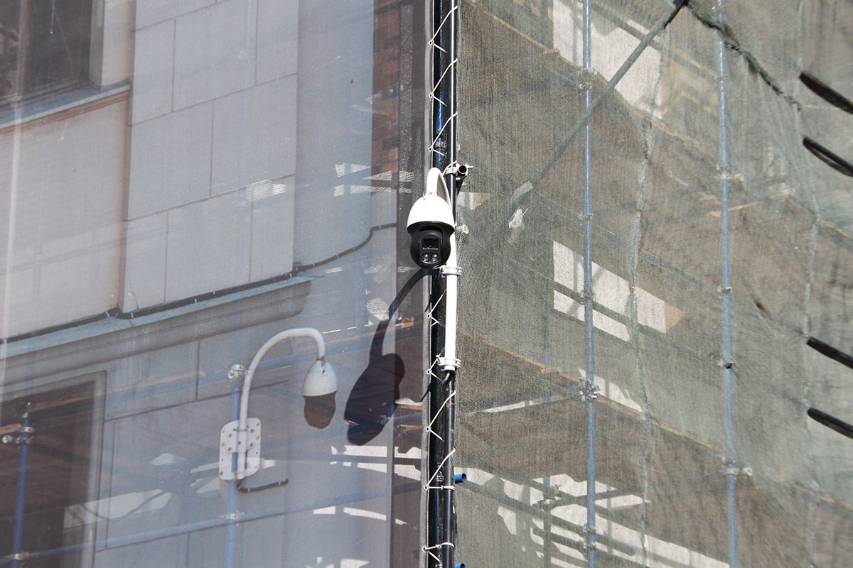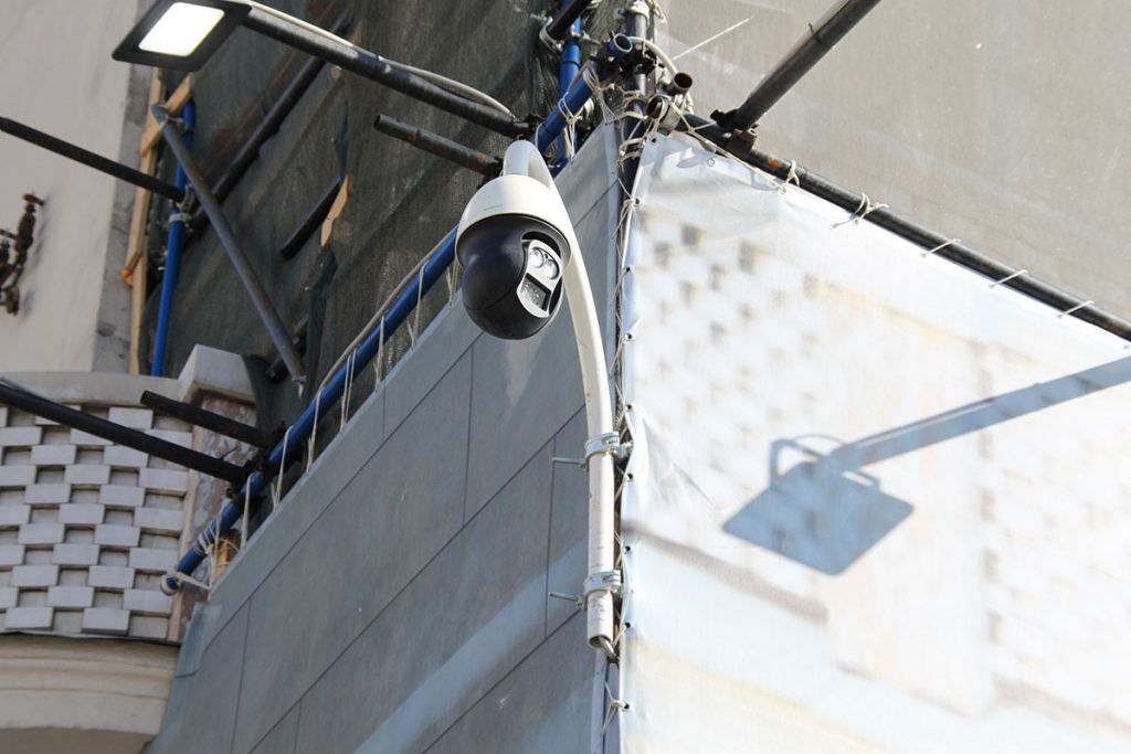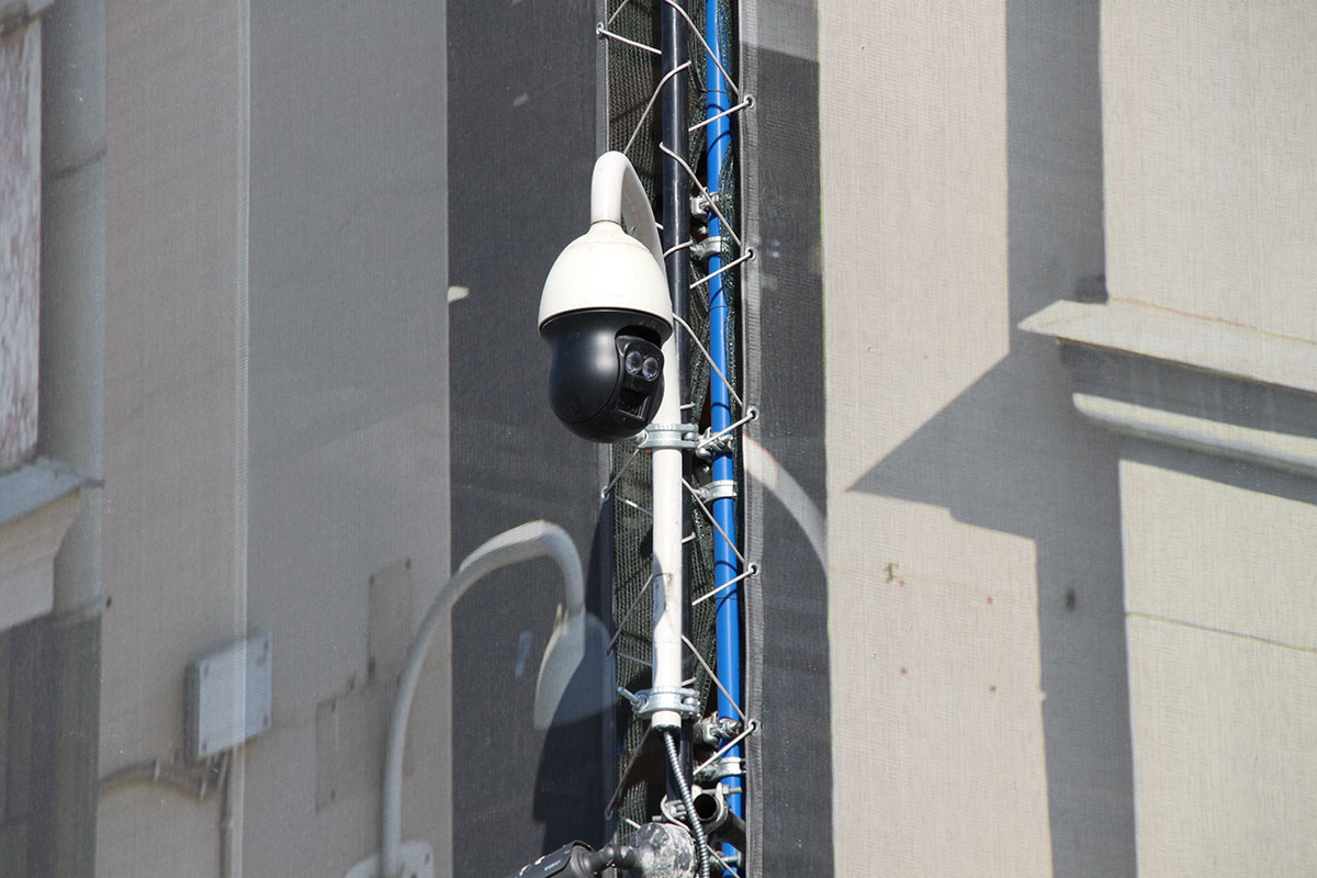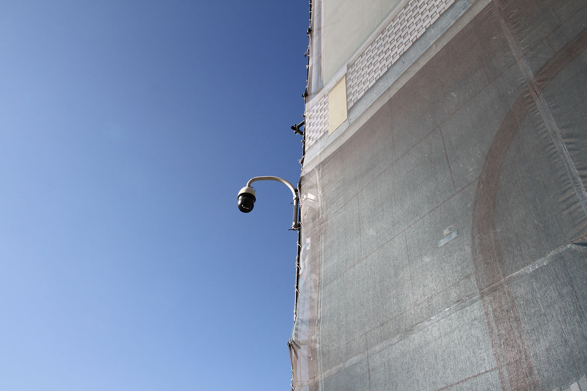 Для решения проблемы заказчика было изготовлено четыре кронштейна усиленной конструкции с нестандартной геометрией: на них предстояло смонтировать относительно тяжёлые поворотные камеры. Работа такого рода специалистам «ТЕРАТЕК» не в новинку, и конструкции были изготовлены в срок. Однако за это время успели наступить морозы, и для обеспечения непрерывности работ строители добавили к лесам утеплительный контур шириной 1,7 метра — в результате вылет кронштейнов оказался недостаточным. Несмотря на то, что это оказалось неожиданностью, решение всё же было найдено. При этом надёжность крепления осталась прежней, и к тому же сохранена целостность фасада, который к тому моменту был уже начисто окрашен.