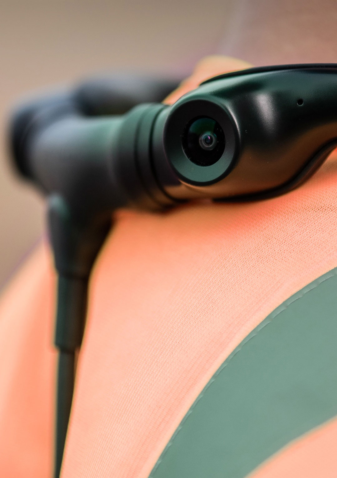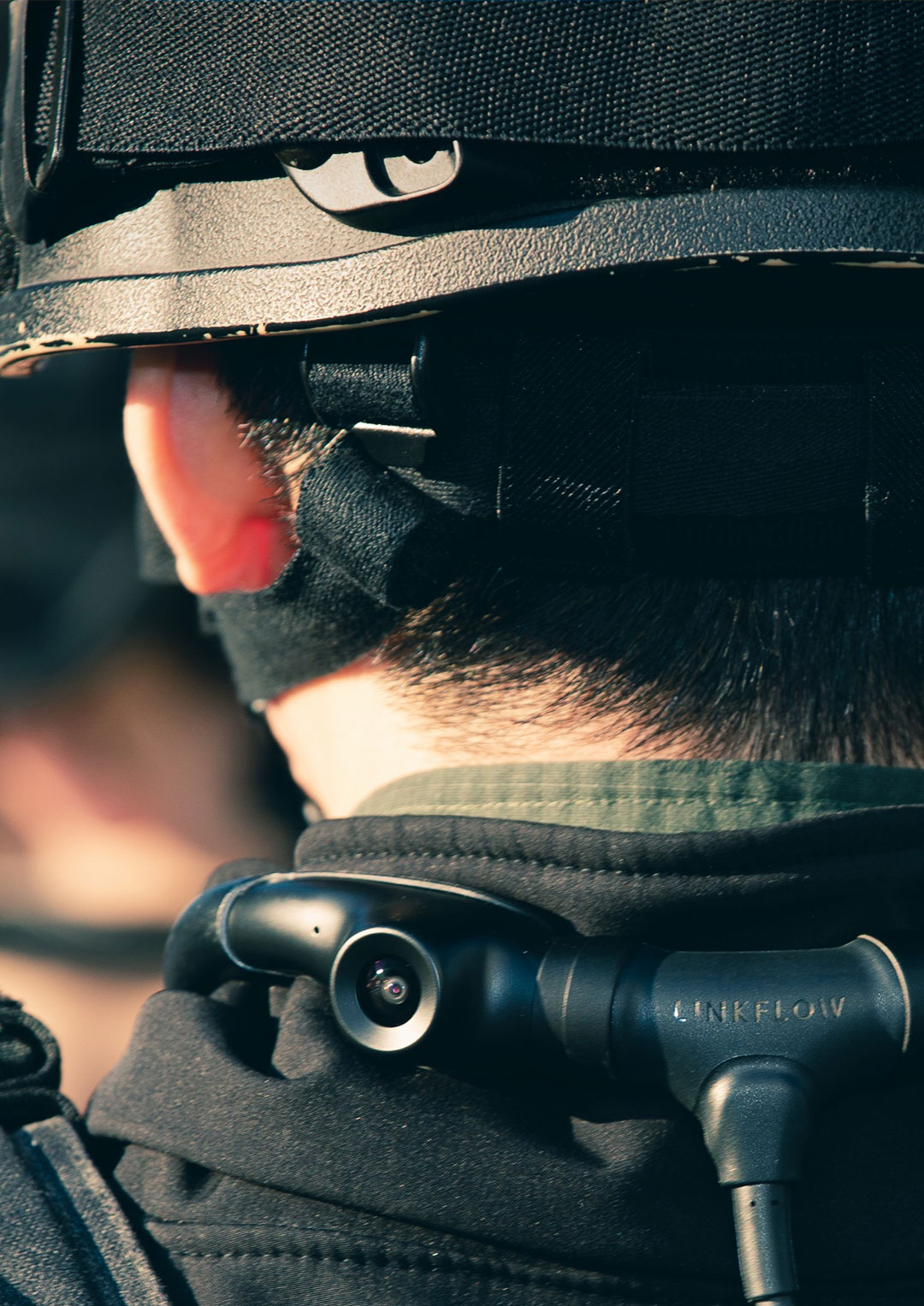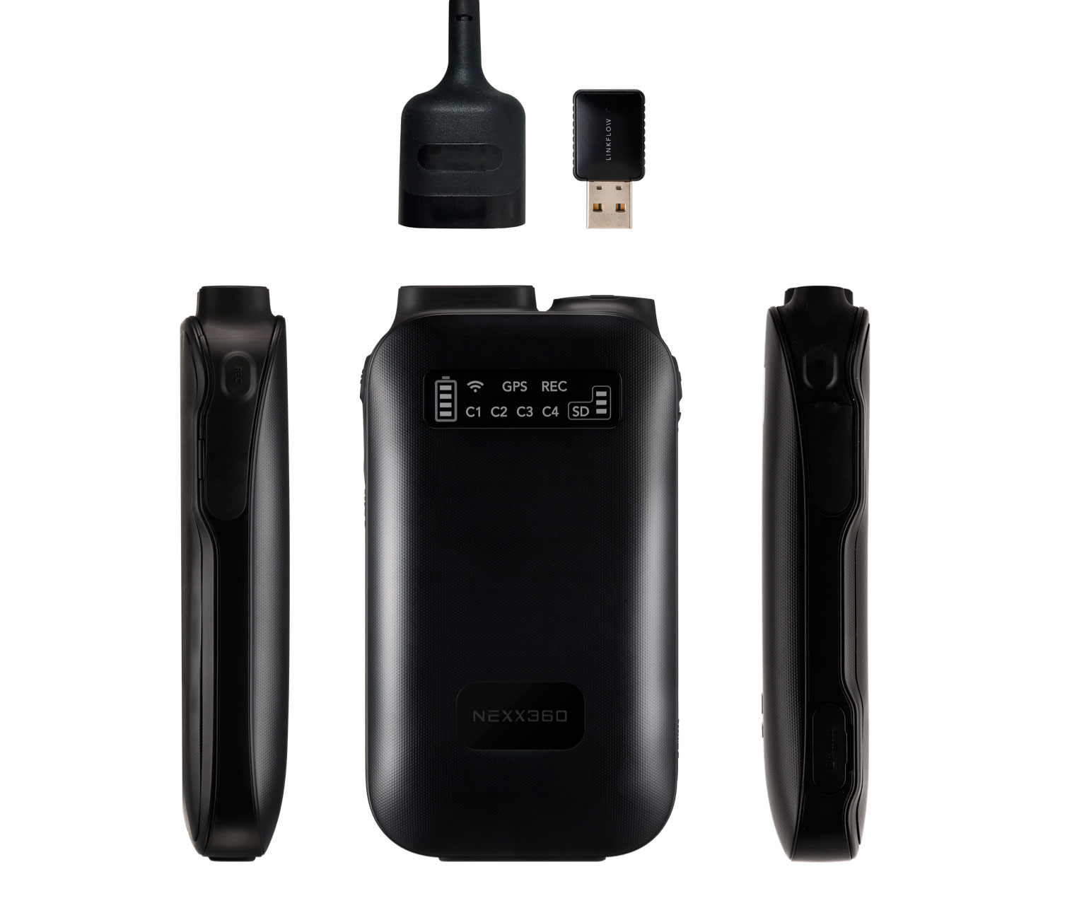 Система IDIS NEXX360 размещается на шее пользователя и представляет собой рамку из прочного пластика, по углам которой закреплены четыре миниатюрных камерных головки с широкоугольной оптикой. Рамка поставляется в двух форм-факторах — стандартном и увеличенном (последний позволяет надевать камерную систему поверх верхней одежды либо защитного костюма).