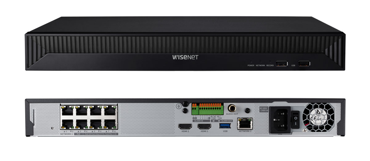 К новому видеорегистратору Wisenet XRN-815S возможно подключить до 8 сетевых камер разрешением до 12 мегапикселов. Устройство способно выводить поступающие на него видеопотоки на два внешних видемонитора, подключаемых по портам HDMI1 (3840x2160 пикселов при кадровой скорости 30 к/с) и HDMI2 (1920x1080 пикселов при 60 к/с).