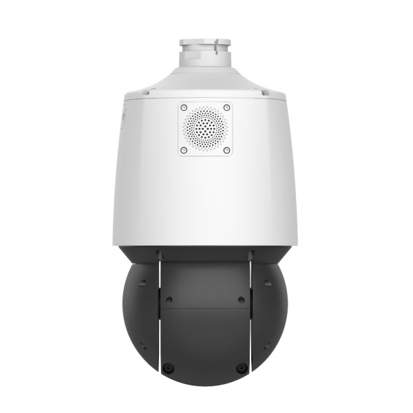 В новой камере UNV IPC94144SR-X25-F40C панорамная съёмка ведётся через фиксированный объектив с фокусным расстоянием 4 мм, расположенный в верхней части корпуса. За детальную съёмку отдельного участка с высоким разрешением отвечает находящийся внизу вариофокальный объектив c 25-кратным оптическим зумом (фокусное расстояние 4,8-120 мм / F1.5). Матрица размером 1/2,7 дюйма обеспечивает 4-мегапиксельное разрешение. Для сжатия применяются кодеки H.265, Ultra H.265, H.264, MJPEG.