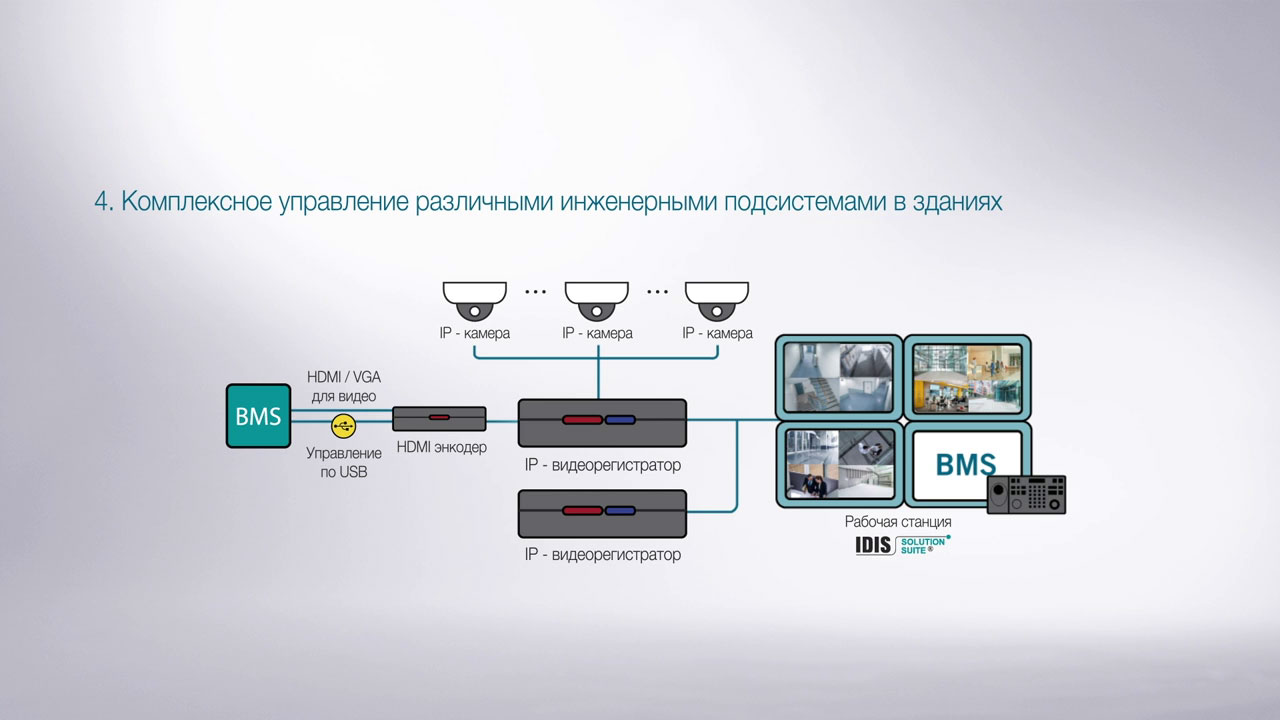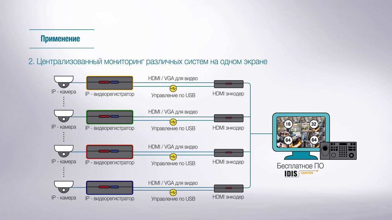 С помощью энкодеров IDIS DP-HE1201 в единую систему можно включать продукцию разных производителей. При этом не нужна её программная стыковка.