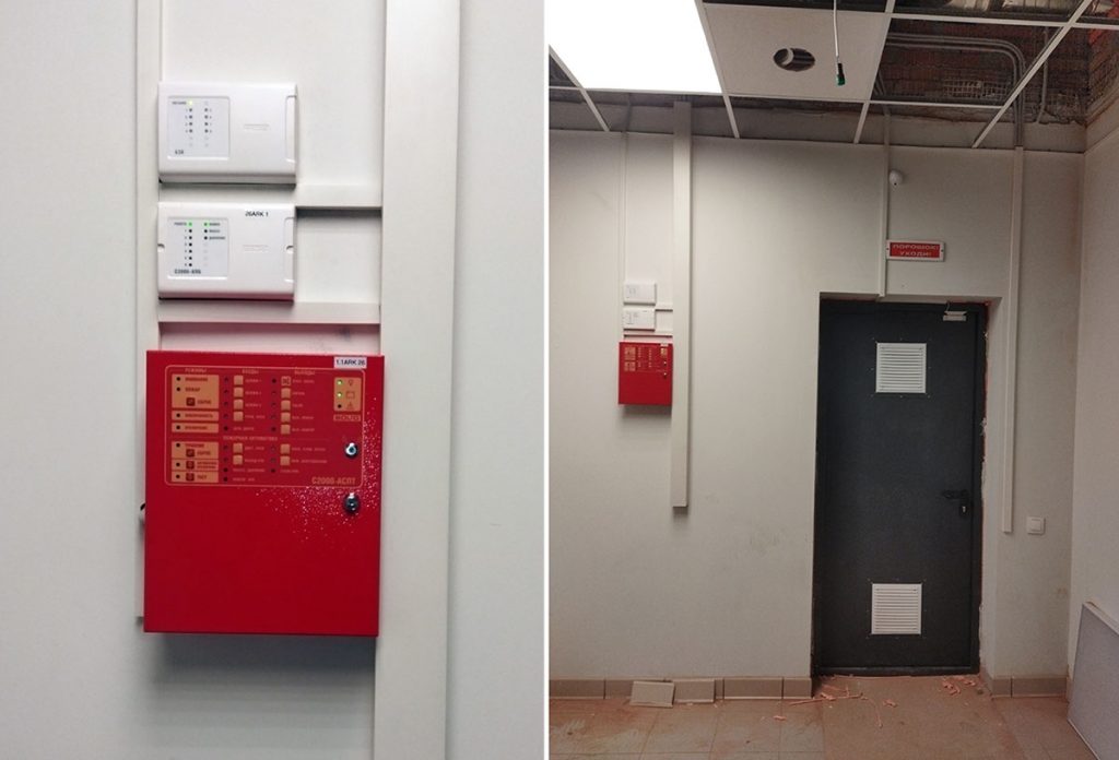 Приёмо-контрольный прибор также необходимо было подключить к общедомовым противопожарным системам бизнес-центра. Получив сигнал о пожаре, прибор должен был бы включать противодымную вентиляцию, опускать лифты, разблокировать двери, запускать систему оповещения о пожаре.