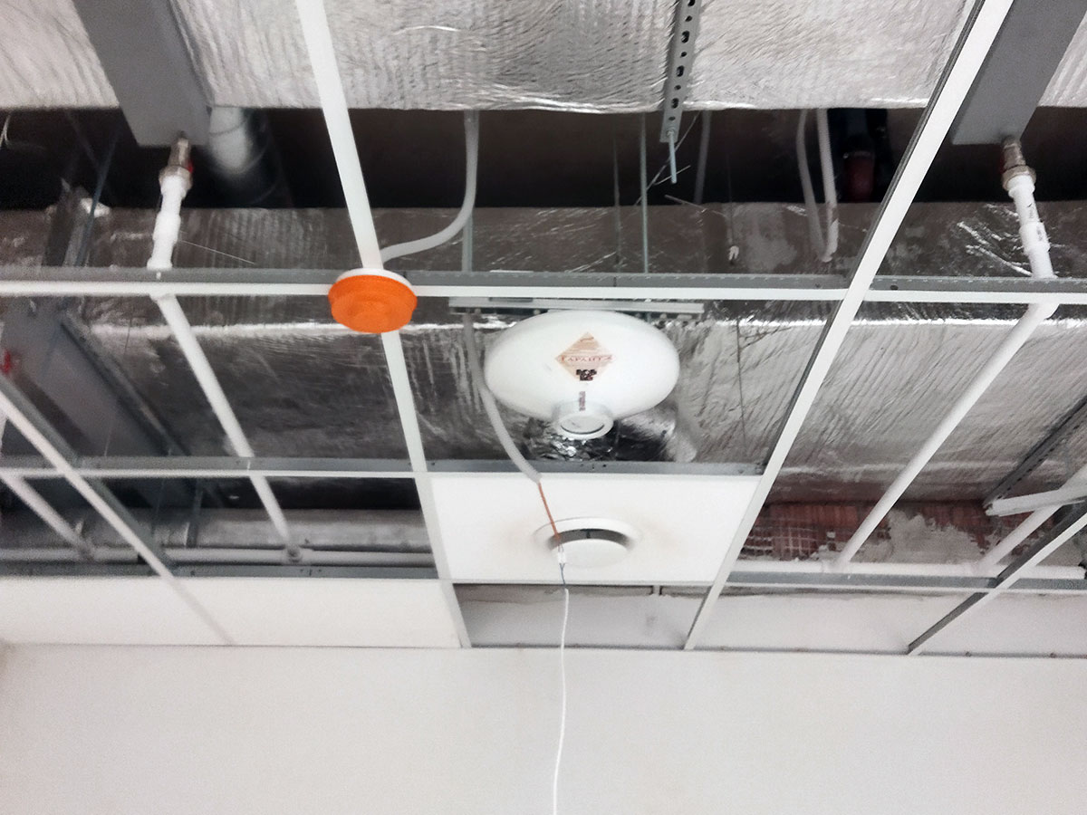Помимо этого, специалисты компании «ТЕРАТЕК ПРОЕКТ» разместили в архиве определённое количество пожарных извещателей в дополнение к тем, которые здесь стояли ранее. Новые извещатели подключены к общедомовой системе бизнес-центра и могут передавать в неё тревожные сигналы. Так обеспечивается общий противопожарный контроль всего здания.