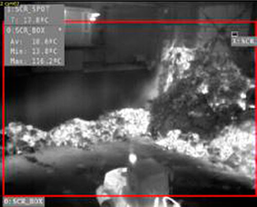 На заводах, где осуществляется утилизация твёрдых бытовых отходов, мусор, направляемый на сжигание в печах, хранится в штабелях, где достаточно высоки риски внезапного возгорания. Периодические визуальные осмотры пространства хранения не позволяют полностью исключить пожары. Ведение непрерывного видеонаблюдения с использованием видеоаналитики позволяет установить появление огня либо дыма и своевременно активировать средства пожаротушения, однако в этом случае неизбежен расход ресурсов на тушение. В поисках решения, способного вовремя обнаружить потенциальный очаг возгорания и предотвратить его, специалисты пришли к необходимости организовать непрерывный термографический контроль поверхности мусорных штабелей.