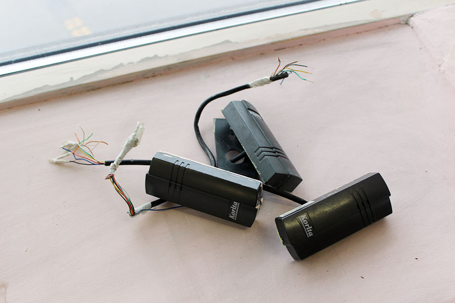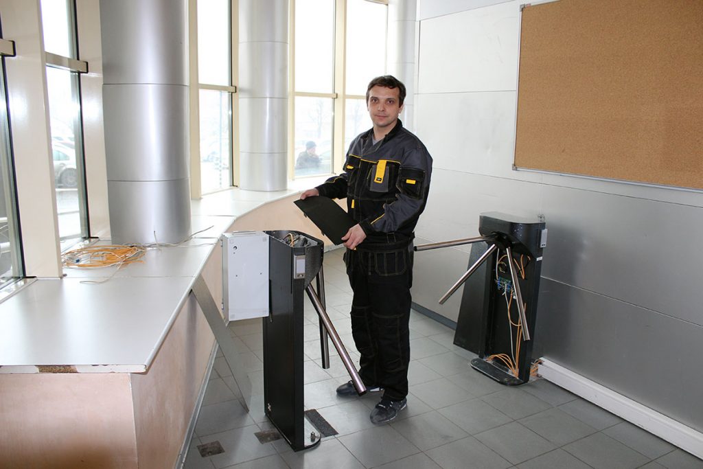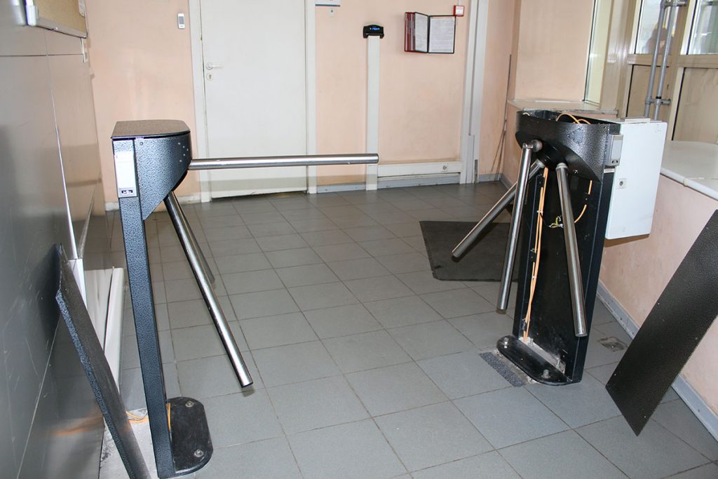 На первом этаже здания находится два турникета-трипода. Выяснилось, что на них нет схемы, и они уже кем-то переделаны — провода оторваны и впаяны напрямую в плату управления. Пришлось удалять эти провода и делать всё по правилам — прокладывать новую проводку. В итоге на восстановление работоспособности турникетов ушло больше всего времени.