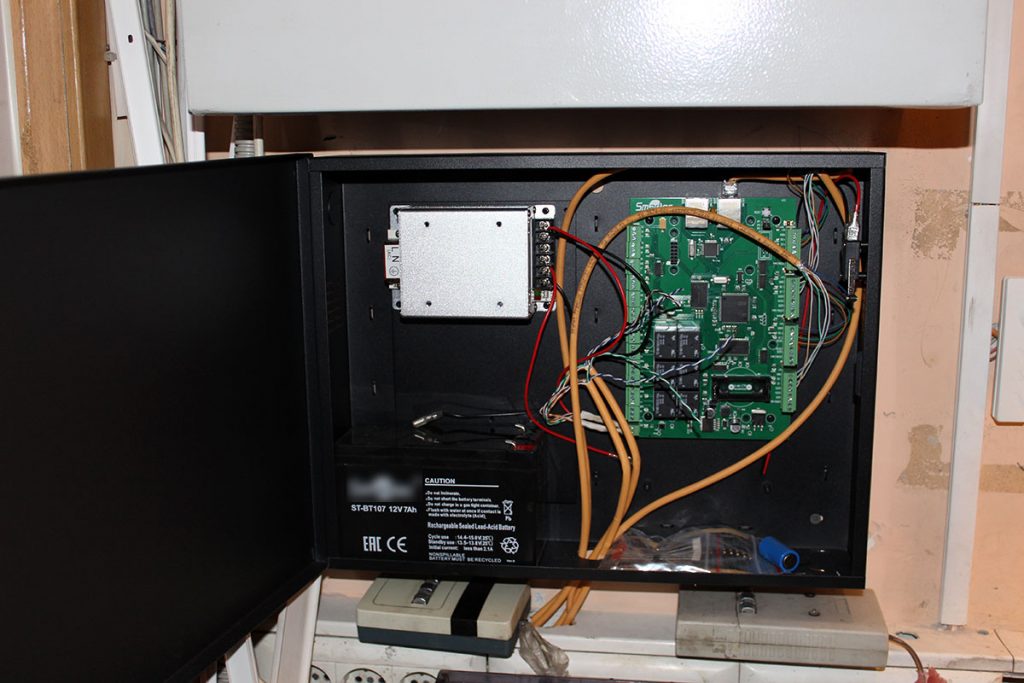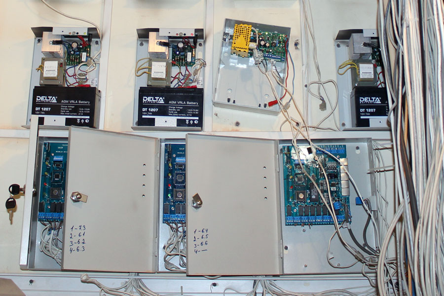 На четвертый день началась установка нового оборудования — считывателей, кнопок, контроллеров, ИБП. Далее выполнялась коммутация оборудования. Вся работа была выполнена за девять дней вместо 15 по договору.