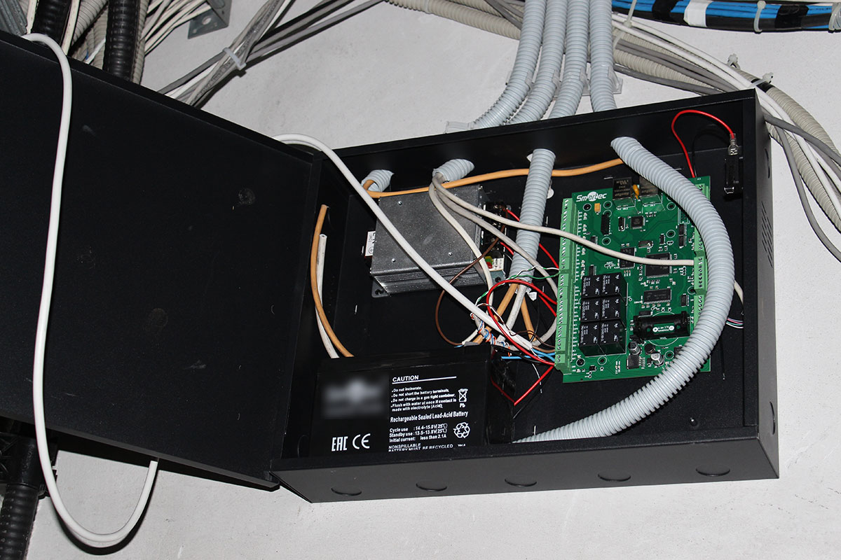 Всё оборудование в новой СКУД, вплоть до кнопок выхода и металлических монтажных боксов, в которых размещены контроллер, модули расширения и ИБП, выпущено одним производителем. Это снимает вопрос совместимости в системе и облегчает её обслуживание.