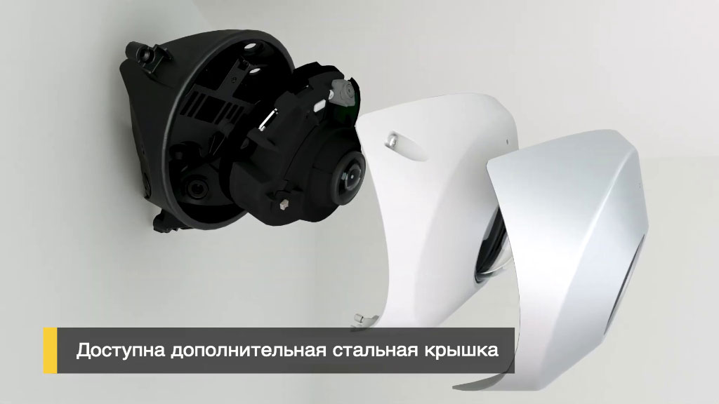 Особенность конструкции этой камеры заключается в простоте установки благодаря инновационным винтовым прокладкам, которые удерживают винты на месте во время монтажа. Кроме того, благодаря устойчивой к истиранию и химическому воздействию передней крышке, которую легко снять, окно можно более тщательно очистить с помощью моющего средства или средства для удаления граффити.