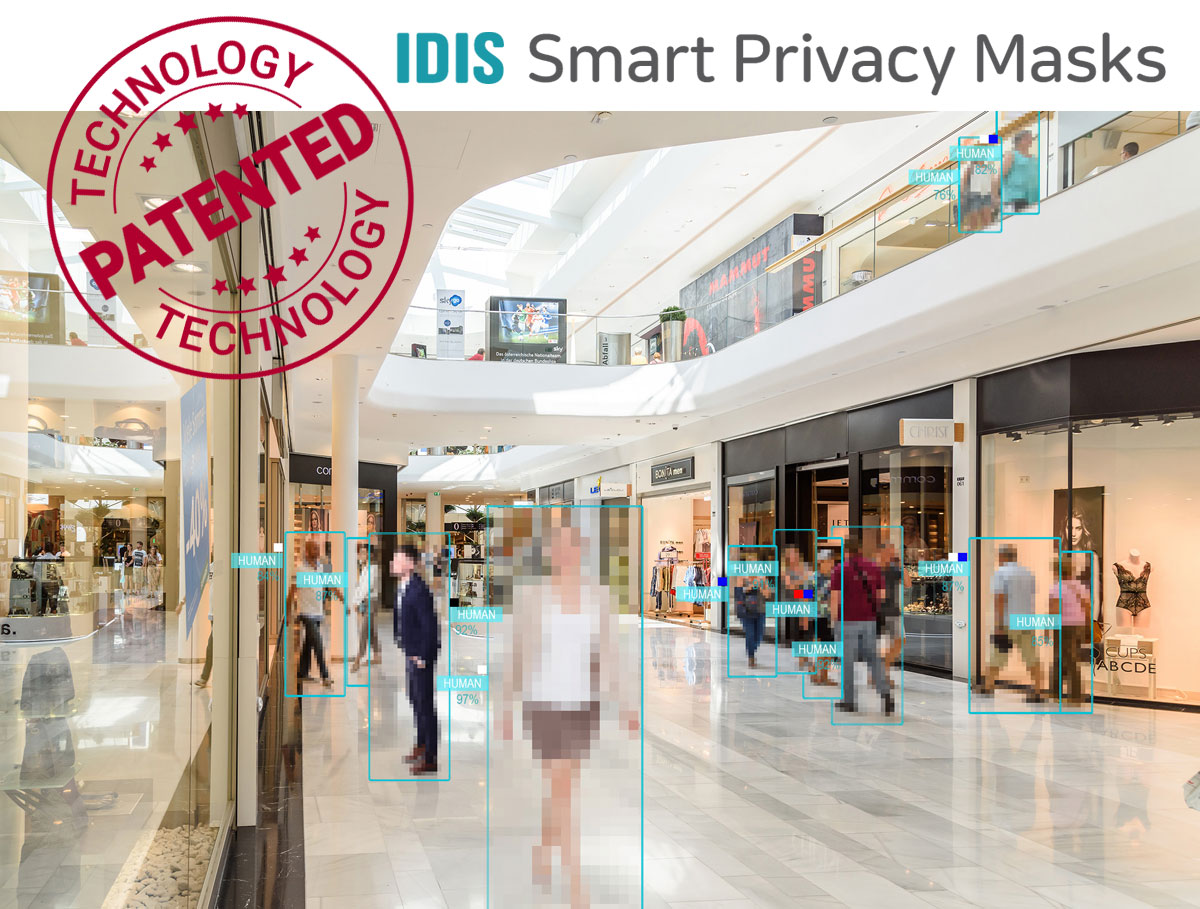 IDIS разработала запатентованный модуль интеллектуальных масок конфиденциальности. Это интеллектуальная система, которая объединяет тепловые карты, детектирование объектов и алгоритмы глубокого обучения. Она распознаёт объекты в кадре в реальном времени и применяет мозаичное маскирование с регулируемой степенью размытия, в зависимости от расстояния и активности объекта.