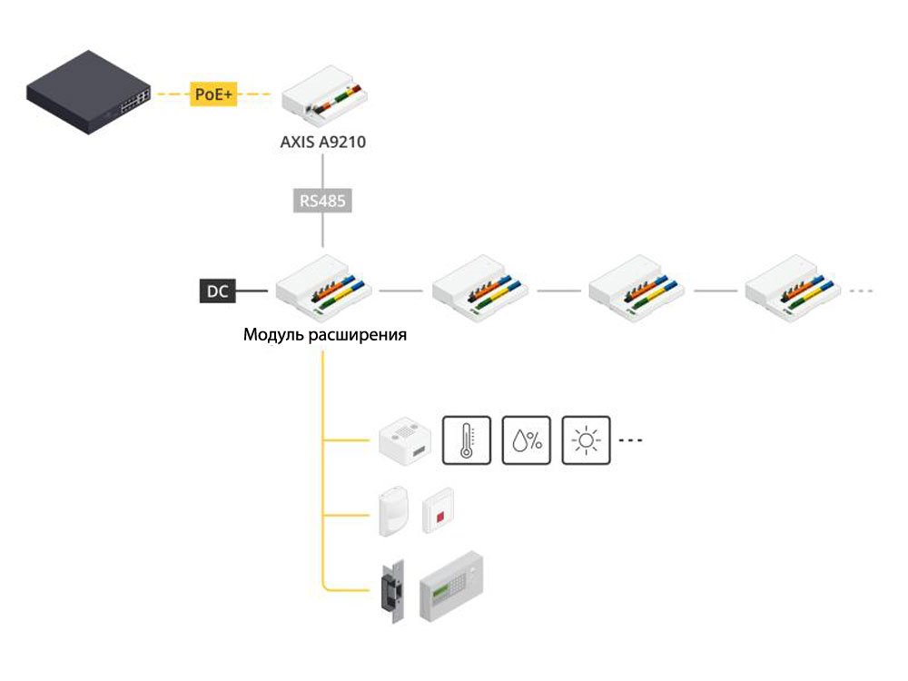 Сетевой релейный модуль AXIS A9210, оснащенный десятью портами ввода-вывода, включая два настраиваемых ввода-вывода, пятью входами, тремя выходами и одним релейным выходом типа «C» (НЗ/НО, до 2 А, максимум 30 В постоянного тока), позволяет расширить функциональные возможности любого устройства Axis Communications или сторонней системы обеспечения безопасности. Он подходит для интеграции с охранными системами, легко добавляя физический контроль доступа для мониторинга дверей и управления замками по расписанию. Благодаря технологии multi-drop к одному устройству AXIS A9210 можно подключить до 16 модулей расширения. Это готовое к работе на открытом воздухе масштабируемое устройство обеспечивает гибкую и экономичную установку и может быть смонтировано в любом месте без необходимости в дорогостоящих серверах.