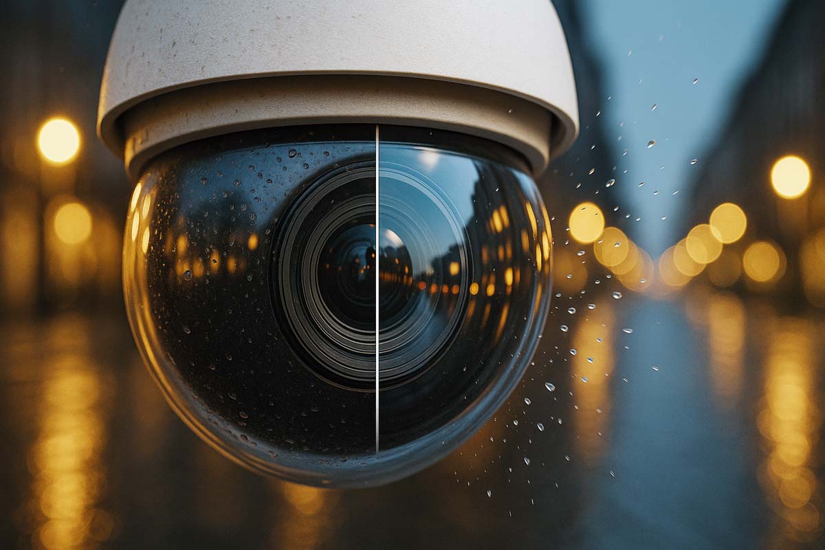 Чистота объектива камеры — это не вопрос эстетики, а ключевой фактор надёжности и качества видеонаблюдения. Даже небольшое загрязнение оптического окна способно существенно снизить контраст, ухудшить детализацию и сделать изображение бесполезным для распознавания лиц, автомобильных номеров или мелких деталей сцены. Для наружных телекамер проблема усугубляется постоянным воздействием окружающей среды. Дождь, снег, туман, пыль, дорожная взвесь воды с реагентами — всё это оседает на защитном стекле и искажает свет, попадающий на матрицу изображения. В условиях города и транспорта к этому добавляются брызги от проезжающих машин, солевые отложения зимой, осадки промышленной пыли и копоть. Ветер разносит мелкие абразивные частицы, которые, смешиваясь с влагой, образуют устойчивую грязевую плёнку. Даже камеры с высоким классом защиты от влаги и пыли (IP66–IP68) не застрахованы от оптического «ослепления» — герметичный корпус защищает электронику, но никак не препятствует налипанию загрязнений на внешнюю поверхность объектива.
